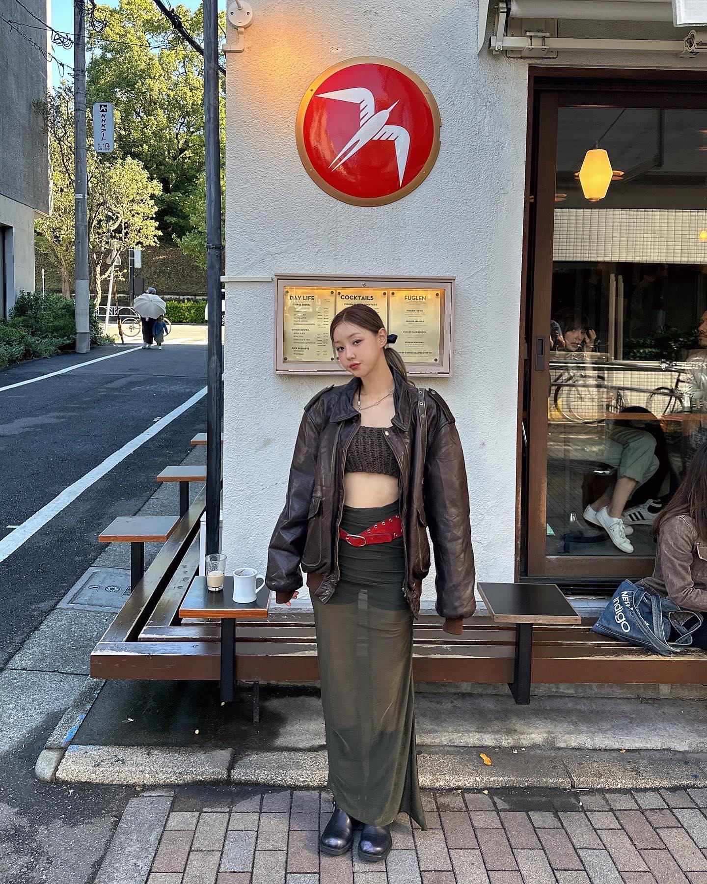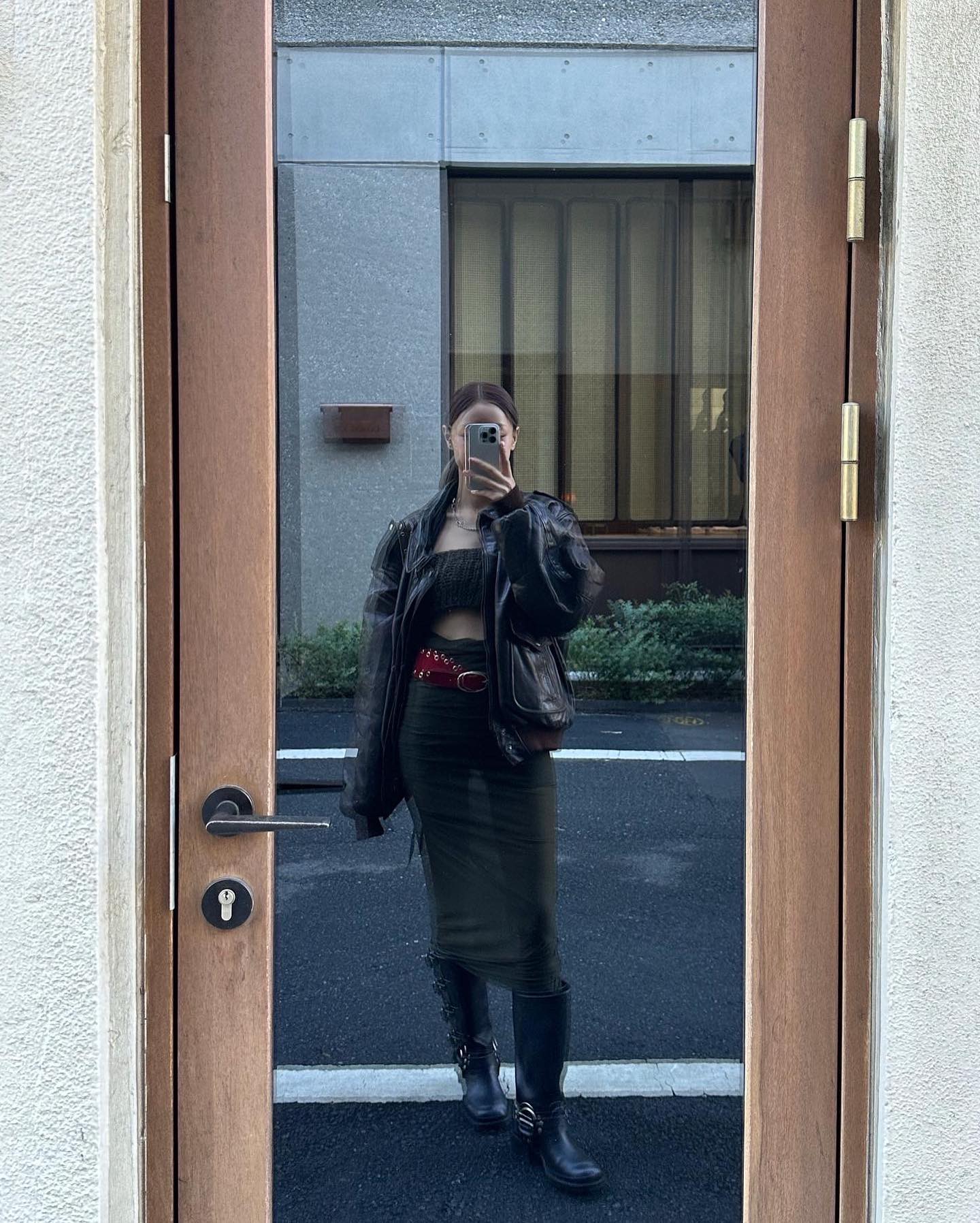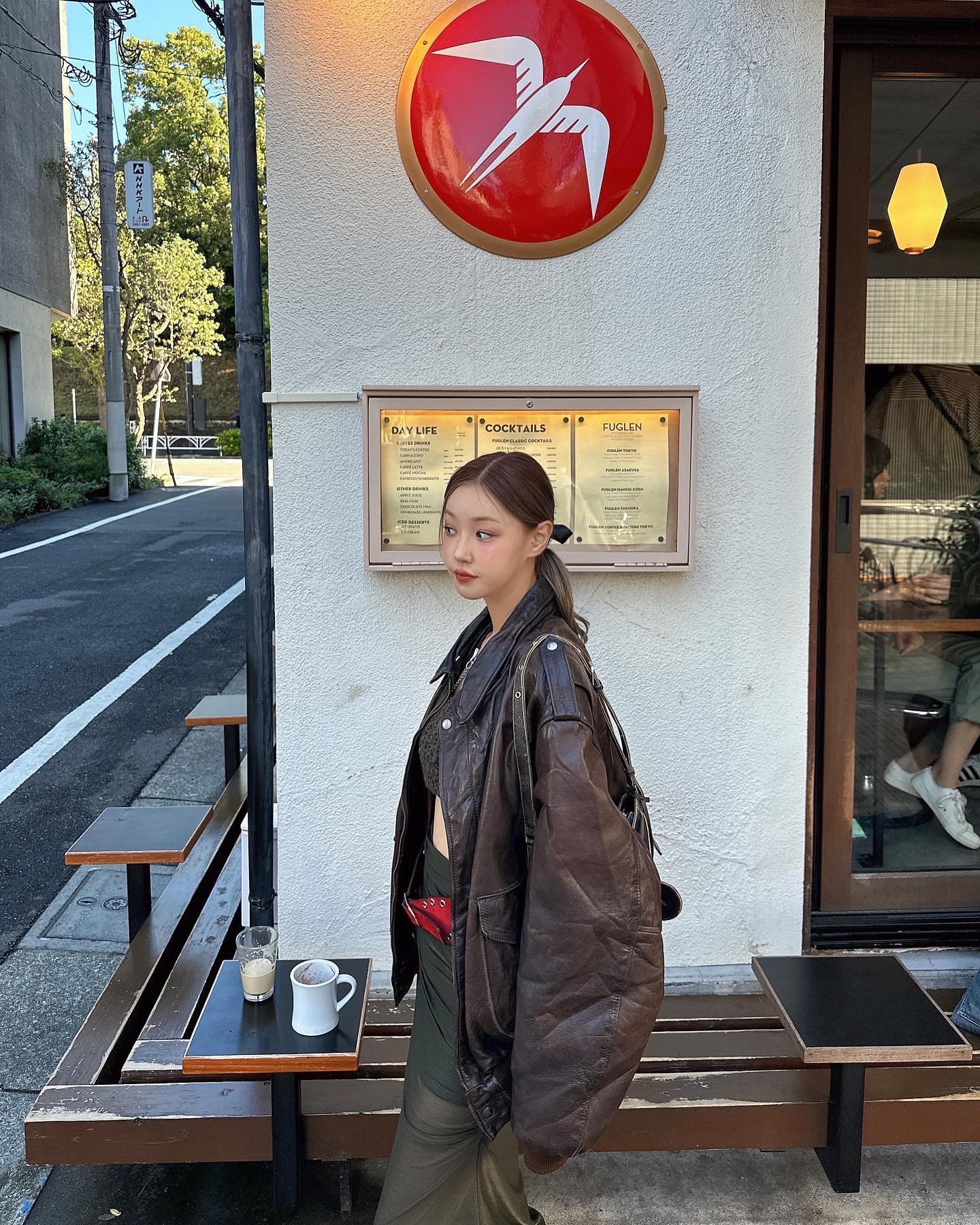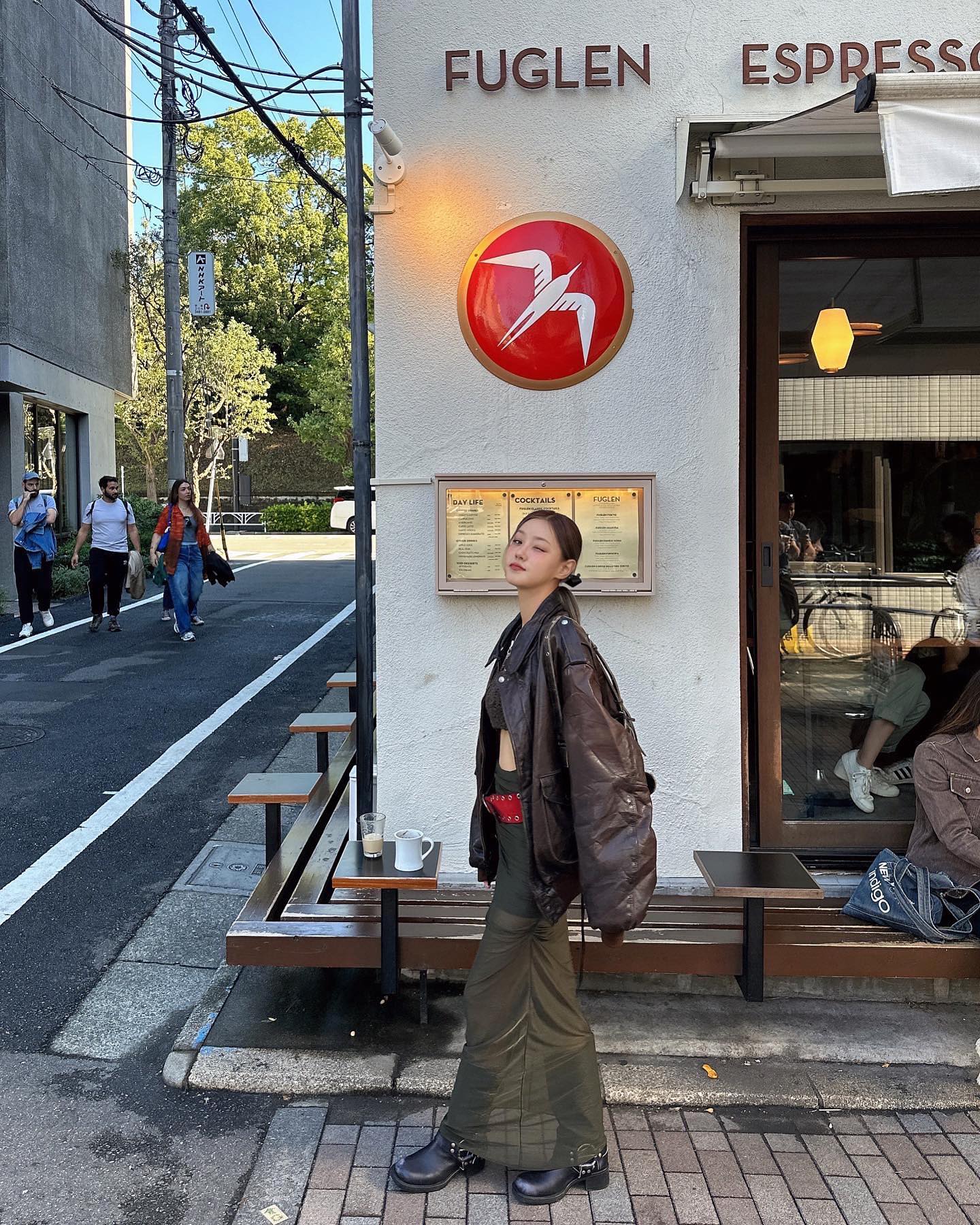 오늘의 스타일링은 빈티지 가죽 재킷과 크롭 니트 탑을 매치한 도회적인 룩으로, 푸글렌의 분위기와 잘 어울렸습니다. 올리브 그린 롱 스커트와 레드 벨트로 포인트를 주어 전체적으로 조화를 이루었고, 블랙 부츠로 마무리해 안정감을 더했습니다. 카페에서 여유롭게 시간을 보내며 스타일리시한 하루를 보낼 수 있어 정말 만족스러웠습니다.