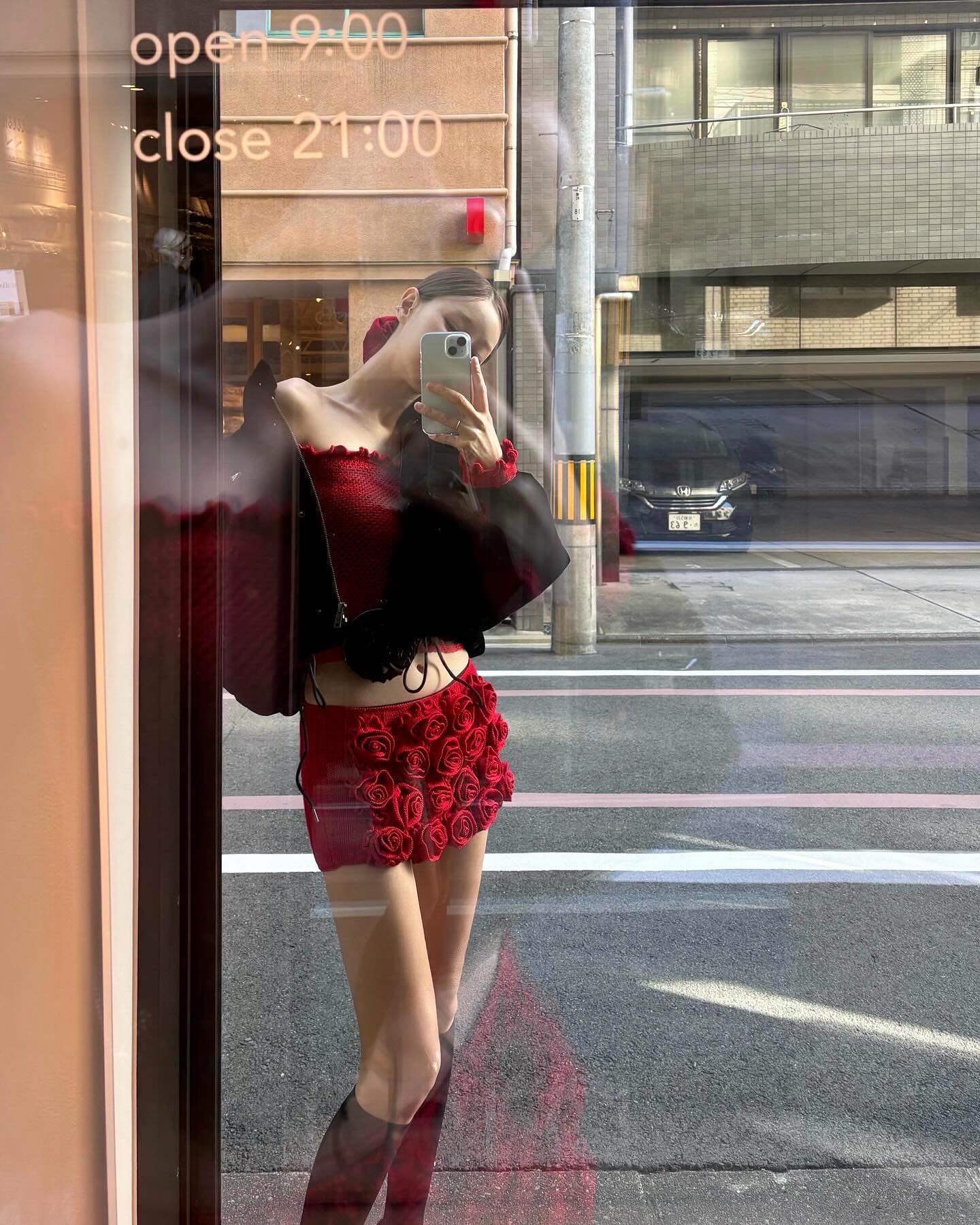 Elegant short dress set featuring a stunning red rose design and intricate details.