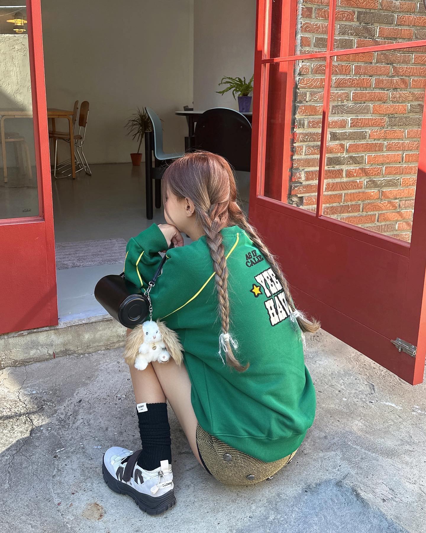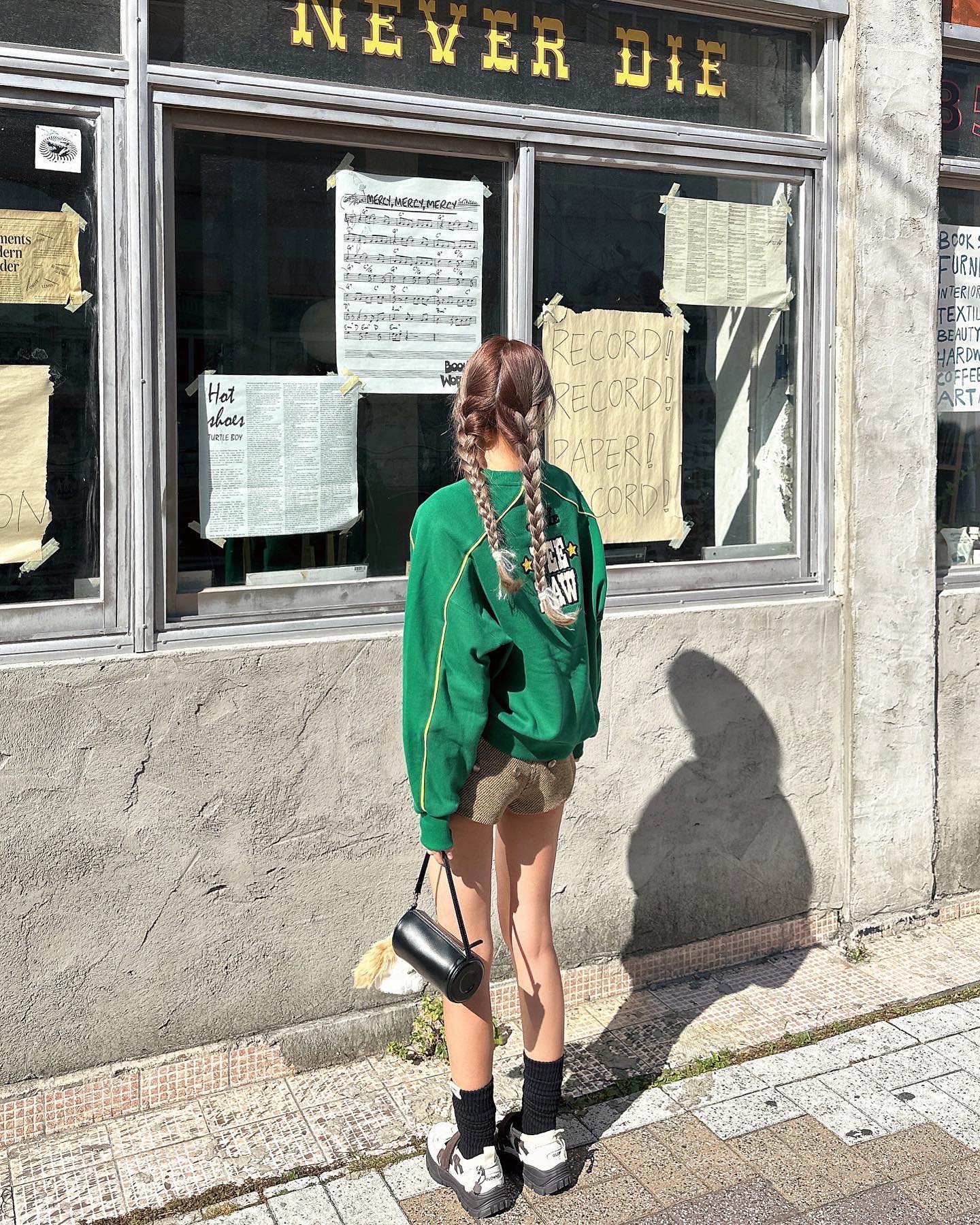 편안한 핏과 스타일리시한 디자인이 돋보이는 그린 오버사이즈 멘투멘 티셔츠입니다.